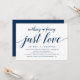 Invitation Fuite de mariage, élégant script bleu marine class