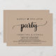 Belle invitation de fête de pour toujours, annonce de fuite de mariage / carte d'invitation, dans un design kraft brun de ferme rustique. C'est parfait pour votre réception de mariage et votre fête de célébration après le mariage. Ajoutez vos détails dans une police / lettrage assorti.