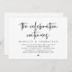 Carte d'invitation de fuite de mariage sur le thème du script noir moderne (la célébration continue). Elle est parfaite pour votre réception de fuite de mariage / fête de célébration après le mariage. Ajoutez vos détails dans une police / lettrage noir assorti.