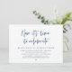Carte d'invitation de mariage avec thème de script bleu marine moderne (Maintenant il est temps de célébrer). Elle est parfaite pour votre réception de mariage intime / fête de célébration après le mariage. Ajoutez vos détails avec une police / lettrage noir correspondant.
