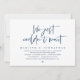 Carte d'invitation de mariage de style Navy Blue moderne (nous n'avons pas pu attendre). Elle est parfaite pour votre réception de mariage / fête de célébration post-mariage. Ajoutez vos détails dans une police / lettrage noir assorti.