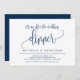 Cette carte d'invitation de conception de calligraphie moderne thématique (c'est un dîner après le mariage) est parfaite pour votre célébration / annonce de fuite de mariage. Ajoutez vos détails dans une police / lettrage bleu marine assorti.