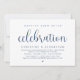 Carte d'invitation de fuite de noces sur le thème du script bleu marine moderne (célébration de bonheur éternel). Elle est parfaite pour votre réception de fuite de noces / fête de célébration post-mariage. Ajoutez vos détails dans une police / lettrage noir assorti.