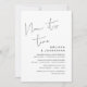 Ceci est la carte d'invitation de la fête de mariage en fuite, avec un design de script minimaliste / minimalisme (C'est maintenant le moment)