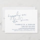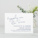 Ceci est la carte d'invitation de la fête de fuite de noces, avec un design de script minimaliste / minimaliste Bleu Nuit (Invitation au dîner de fin heureuse).