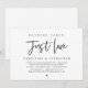 Carte d'invitation de mariage minimaliste moderne sur le thème du script (rien de fantaisie, juste l'amour). Elle est parfaite pour votre réception de mariage / fête de célébration post-mariage. Ajoutez vos détails dans une police / lettrage noir assorti.