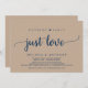 Belle fête de célébration de rien de fantaisiste juste d'amour, Carte d'annonce / invitation de fuite de noces, en kraft brun de ferme rustique, design de police Navy bleu. C'est parfait pour votre réception de mariage et fête de célébration après le mariage. Ajoutez vos détails dans la police / lettrage correspondant.