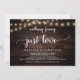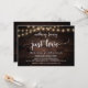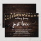 Belle fête de célébration d'amour rien de fantaisiste, Carte d'annonce / invitation de fuite de noces, dans un design de lumières de corde de ferme rustique en bois. C'est parfait pour votre réception de mariage et votre fête de célébration post-mariage. Ajoutez vos détails dans la même police / lettrage.