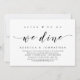 Carte d'invitation de fuite en amoureux sur le thème du script moderne (Après nous nous marions, nous dînons). Elle est parfaite pour votre célébration décontractée de mariage au bord du lac.