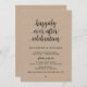 Jolie écriture moderne décontractée, en police d'écriture noire, sur fond de papier kraft marron, annonce de fuite en amoureux, carte d'invitation (célébration de bonheur éternel). C'est parfait pour votre réception de mariage et votre fête de célébration post-mariage. Ajoutez vos détails dans la même police / lettrage.