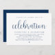 Carte d'invitation de fuite en amoureux sur le thème du script bleu marine moderne (célébration de l'amour éternel). Elle est parfaite pour votre réception de fuite en amoureux / fête de célébration après le mariage. Ajoutez vos détails dans une police / lettrage noir assorti.