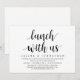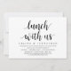 Carte d'invitation de mariage sur le thème du script moderne (Déjeuner avec nous, Les Jeunes mariés). Elle est parfaite pour votre célébration décontractée de mariage au bord du lac.