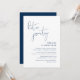 Ceci est la carte d'invitation pour une fuite en amoureux, avec un design minimaliste / script élégant Bleu Nuit (faisons la fête)