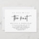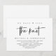 Carte d'invitation de mariage sur le thème du script noir moderne (nous avons franchi le pas). Elle est parfaite pour votre réception de mariage intime / fête de célébration après le mariage. Ajoutez vos détails dans la même police / lettrage noir.