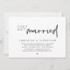 Moderne carte d'invitation de mariage minimaliste sur le thème de l'écriture (fuite en amoureux) (nous venons de nous marier). Elle est parfaite pour votre réception de mariage en petit comité / fête de célébration après le mariage. Ajoutez vos détails dans la même police / lettrage noir.