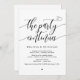 Merveilleuse calligraphie noire moderne, Annonce de mariage en fuite, Carte d'invitation (La fête continue). C'est parfait pour votre réception de mariage et votre fête de célébration post-mariage. Ajoutez vos détails dans la même police / lettrage.
