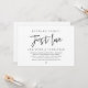 Carte d'invitation de mariage en fuite sur le thème du script minimaliste moderne (rien de fantaisiste, juste l'amour). Elle est parfaite pour votre réception de mariage en fuite / fête de célébration après le mariage. Ajoutez vos détails dans une police / lettrage noir assorti.