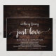 Belle fête de célébration de rien de fantaisiste juste d'amour, Carte d'annonce / invitation de fuite en amoureux, dans un design rustique en bois brun foncé de ferme. C'est parfait pour votre réception de mariage et votre fête de célébration post-mariage. Ajoutez vos détails dans la même police / lettrage.