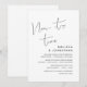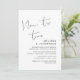 Ceci est la carte d'invitation pour une fête de mariage en fuite, avec un design de script minimaliste / minimalisme (C'est maintenant le moment)