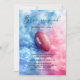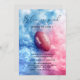 Une invitation à l'American Football ou English Rugby Sport sur le thème Baby Gender Reveal. Le modèle invitation éditable présente une fumée rose et bleu pastel entourant une balle. Le texte de la typographie noire dit bleu ou rose, que pensez-vous ? Personnalisez-vous en éditant l'invitation numérique ou imprimée avec les détails de votre événement.