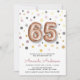 rose d'or d'or moderne 65e anniversaire ballon invitation à la fête d'anniversaire. Conception avec le numéro 65 en forme de ballons d'or rose, confettis et détails de la fête à l'avant. Couleur de gris foncé sur le dos. Pour modifier ce modèle, cliquez sur customiser plus loin.