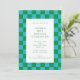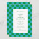 Invitation Fun Checkerboard bleu vert géométrique Anniversair