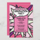 Personnalisez avec le nom de la diplômée et les détails de la fête pour annoncer votre événement spécial. Une invitation à la remise de diplômes amusante, cool et branchée de bande dessinée rétro inspirée de la pop art qui met le wham, zap, pow dans n'importe quel événement de célébration de grade de super-héros. Conçu par Thisisnotme©