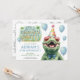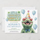 A cheerful watercolor dinosaur design featuring a happy T-rex in party colors, perfect for little adventurers who love prehistoric fun. Surrounded by balloons, leaves, and festive textures, this design brings joyful dino energy to any celebration. The reverse side includes a playful dinosaur-themed coloring page for kids to enjoy — adding creativity and extra fun to the event.