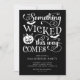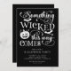 Cette élégante invitation en noir et blanc présente l'emblématique dicton "Quelque chose de méchant dans cette façon de venir" dans la typographie moderne. C'est la meilleure façon d'invitation vos amis à une fête d'Halloween éffrayante et amusante où ils peuvent se lâcher et s'amuser un peu méchant.
