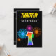 Ce design amusant et vibrant d'invitation de fête d'anniversaire comprend un motif coloré inspiré par des feux d'artifice festifs, ainsi que le numéro "1" avec un arc-en-ciel multicolore comme un motif dégradé, sur un arrière - plan de couleur noire. Le nom sur le prénom peut être personnalisé. Le dos contient des informations personnalisées et des détails sur la fête d'anniversaire. Des invitations sur le thème de l’anniversaire comme celle-ci pourraient être utilisées pour inviter des gens à une fête célébrant le 1er anniversaire de quelqu’un. [~Z0000325]