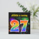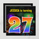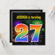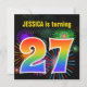 Ce design amusant et dynamique d'invitation de fête d'anniversaire comprend un feu d'artifice coloré inspiré motif, ainsi que le numéro "27" avec un arc-en-ciel multicolore comme spectre ou motif dégradé. Le nom sur le devant peut être personnalisé. Le verso contient des informations personnalisées sur la fête. Des invitations à des fêtes d’anniversaire comme celle-ci pourraient être utilisées pour des invités invitations à une fête d’anniversaire qui se tient pour célébrer le vingt-septième anniversaire de quelqu’un. [~Z0000337]