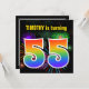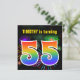 Ce design amusant et dynamique d'invitation de fête d'anniversaire comprend un feu d'artifice coloré inspiré motif, ainsi que le numéro "55" avec un spectre multicolore inspiré arc-en-ciel ou motif dégradé. Le nom sur le devant peut être personnalisé. Le verso présente des détails personnalisables sur la fête. Des invitations à des fêtes d’anniversaire comme celle-ci pourraient être envoyées à des invités invitations à une fête d’anniversaire organisée pour célébrer le cinquante-cinquième anniversaire de quelqu’un. [~Z0000337]