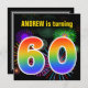 Ce design amusant et dynamique d'invitation de fête d'anniversaire comprend un feu d'artifice coloré inspiré motif, ainsi que le numéro "60" avec un spectre multicolore inspiré arc-en-ciel ou motif dégradé. Le nom sur le devant peut être customisé. Le verso présente des informations personnalisables sur la fête. Des invitations à des fêtes d’anniversaire comme celle-ci pourraient être envoyées à des invités potentiels pour une fête d’anniversaire organisée pour célébrer le soixantième anniversaire de quelqu’un. [~Z0000337]