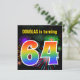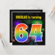 Ce design amusant et dynamique d'invitation de fête d'anniversaire comprend un feu d'artifice coloré inspiré motif, ainsi que le numéro "64" avec un spectre multicolore inspiré arc-en-ciel ou motif dégradé. Le nom sur le devant peut être personnalisé. Le verso présente des informations personnalisables sur la fête. Des invitations à des fêtes d’anniversaire comme celle-ci pourraient être envoyées à des invités potentiels pour une fête d’anniversaire organisée pour célébrer le soixante-quatrième anniversaire de quelqu’un. [~Z0000337]
