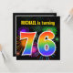 Ce design amusant et dynamique d'invitation de fête d'anniversaire comprend un feu d'artifice coloré inspiré motif, ainsi que le numéro "76" avec un spectre multicolore inspiré arc-en-ciel ou motif dégradé. Le nom sur le devant peut être customisé. Le verso contient des informations personnalisées sur la fête. Des invitations à des fêtes d’anniversaire comme celle-ci pourraient être envoyées à des invités potentiels pour une fête d’anniversaire organisée pour célébrer le soixante-seizième anniversaire de quelqu’un. [~Z0000337]