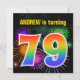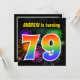 Ce design amusant et dynamique d'invitation à la fête d'anniversaire comprend un motif coloré inspiré par des feux d'artifice festifs éclatants, ainsi que le numéro "79" avec un spectre multicolore inspiré de l'arc-en-ciel ou motif dégradé. Le nom sur le devant peut être personnalisé. Le dos présente des détails personnalisés sur la fête. Des invitations à des fêtes d’anniversaire comme celle-ci pourraient être envoyées aux participants potentiels pour une fête d’anniversaire organisée pour célébrer le soixante-dix-neuvième anniversaire de quelqu’un. [~Z0000337]