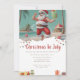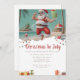 Fun Noël en Juillet plage tropicale avec aquarelle portrait illustré de père Noël en dégustant des boissons, feuilles de palmiers, palmier, cadeaux. Célébrez l'été, la fête de la piscine et le q.