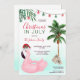 Invitation Fun Noël en juillet plage tropicale flamingo