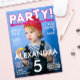Celebrate any birthday in style with this Magazine Cover Birthday Invitation. Designed to look like a real publication front page, it features a full-page photo and bold headlines. Stylish pink and white typography pop against a playful layout that feels like a celebrity cover shoot made just for your kid. It’s eye-catching, vibrant, and full of personality — perfect for making your little one feel like the star of the show. Ideal for unique celebrations and glam themed events, this editable magazine-style invitation adds a unique, memorable touch that guests will love from the moment they see it.