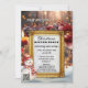 A fun whimsical Christmas dinner party invitation featuring seasonal illustrations with flowers, candle and snowman. A QR code template can be easily customized or deleted if you do not need it. The back shows a simple dark red slightly textured design.