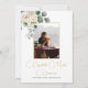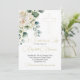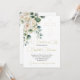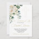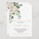 Un bouquet floral aux couleurs neutres et feuillage de feuilles est la base de cette élégante invitation funéraire chrétienne personnalisée. Vert doux et bleu avec un accent de taches d'or flottant dans le design. Modifiez facilement les informations pour votre propre invitation personnalisée. Modifiez l'image pour votre propre photo.