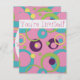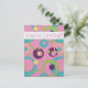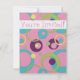 Un arrière - plan rose vif est décoré d'un motif funky de cercles, de points et d'anneaux dans une variété de couleurs vives, dont le bleu, le vert, le violet et le jaune.