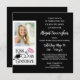 Invitation amusante de remise de diplômes dans votre choix de couleurs mettant en vedette le dicton KISS MY CLASS GOODBYE dans la typographie moderne et la photo de votre diplômé. La couleur noire de l'arrière - plan peut être changée en couleur d'école ou en couleur personnalisée. Cette invitation est également disponible en téléchargement de fichiers numériques pour le partage en ligne ou via les médias sociaux. ASSISTANCE : Pour obtenir de l'aide sur la modification/personnalisation de la conception, le changement de couleur, le transfert de la conception vers un autre produit ou si vous souhaitez coordonner des éléments, contactez le concepteur AVANT DE COMMANDER via Zazzle Conversation ou makeitaboutyoustore@gmail.com.
