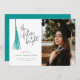 Carte photo moderne et fantaisiste de graduation avec illustration d'un moule turquoise avec un texte de typographie écrit à la main qui dit "l'avenir est brillant."