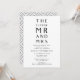 Invitations de fiançailles en noir et blanc avec une typographie "The future Mr and Mrs". Customisé avec vos noms et les détails de votre fête. Le dos est recouvert d'un motif diamant noir et blanc moderne sur le dos.