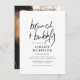 Cette invitation à la douche nuptiale présente une calligraphie chic, une typographie moderne et une photo personnalisée. Nous avons choisi cette combinaison classique noir et blanc pour les mariées qui veulent un look chic et minimaliste. En haut de la carte, "brunch + bubbly" est écrit à la main dans un style de lettrage moderne, avec le nom de la mariée ci-dessous dans les chapiteaux sans-serif. Un séparateur de ligne le sépare du reste des informations sur l'événement. Les détails de la célébration sont dans une combinaison branchée de minuscules serif et de capitales. Le lieu est tout en coque inférieur. L'arrière des cartes comporte une photo de votre choix. En blanc, "future mrs" est en écriture de style signature et le nom de famille est sous. Ainsi, l'invitation est présentée sur des frigos, des cheminées, des étagères, des tables basses ou des tableaux photo. Modifiez facilement le libellé pour être unique à votre événement. D'autres variations de couleur sont disponibles dans notre magasin, ou vous pouvez choisir votre couleur pour donner le ton à votre mariage. N'hésitez pas à m'envoyer un message pour toute question, je serai heureux de vous aider !