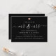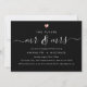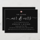 Cet invitation minimal de parti d'engagement brille par sa simplicité. Belle écriture avec des fioritures : "L'Avenir, M. et Mme", ainsi que les détails de votre célébration personnelle dans la typographie moderne. Ci-dessus se trouve un délicat coeur d'or faux rose. C'est la version noire.