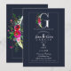Invitation G Monogramme Dernière Initiale Moderne Fleurs Bleu