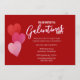 Galentines party invitation with 3 hearts on the left, one each in red, dark pink and light pink, on a red background inviting your gal pals to celebrate your friendship. Edit the personal details right on the product page. Original art from Dogwood & Thistle.