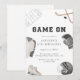 Celebrate your child’s birthday with this stylish Game On hockey birthday invitation. Featuring watercolor hockey sticks, skates, jersey, gloves, and helmet illustrations, this design is perfect for a fun sports themed birthday celebration. Easily personalize the details to invite friends and family to an exciting hockey game day birthday party.
